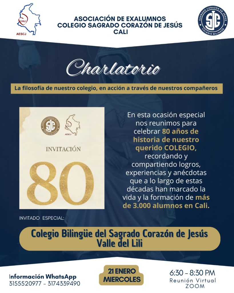 Tema: AESCJ invita al Charlatorio en honor a los 80 años de nuestro Colegio y en el cual contaremos nuestras anécdotas